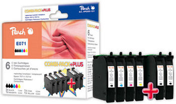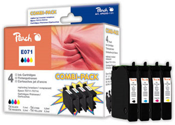 Für die T0711 (black), T0712 (cyan), T0713 (magenta) und T0714 (yellow) Tintenpatronen gibt es als Ersatz für die Originalpatronen von Epson auch kompatible Druckerpatronen von Peach, mit denen sich gegenüber den original Tintenpatronen viel Geld sparen lässt. Die Peach Druckerpatronen sind wesentlich günstiger im Preis und bieten dennoch nachweislich eine ausgezeichnete Qualität beim Drucken.